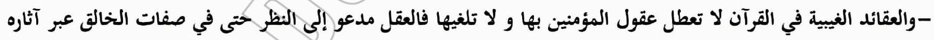 - نجد بالقرأن معارت سامية وتعاليِ عاليِة في العقاند والعبادات وفي التشريعات المننية والجنانية والحربية والمالية