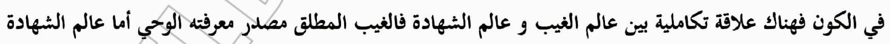 عالم الغيب +عالم الشهادة =-علاقة تكامل و تلازم و ليست علاقة تناقض كما يرى البعض من الذين فصلوا تعسفا بين