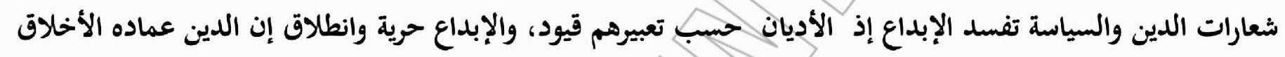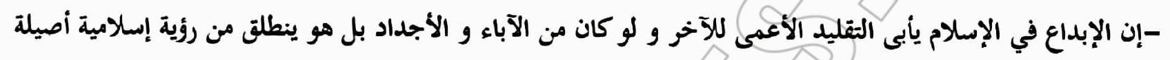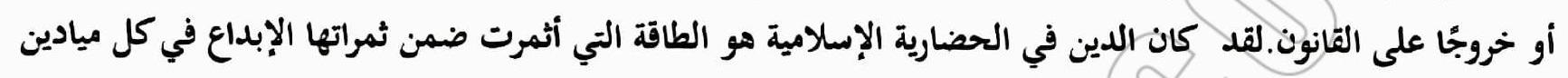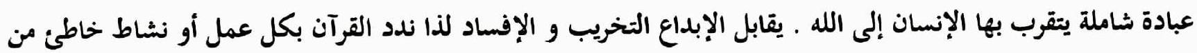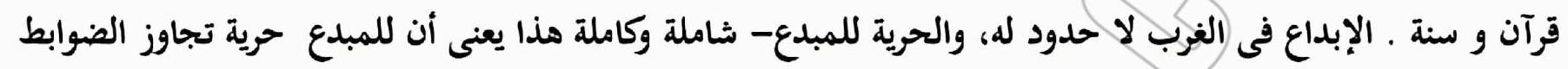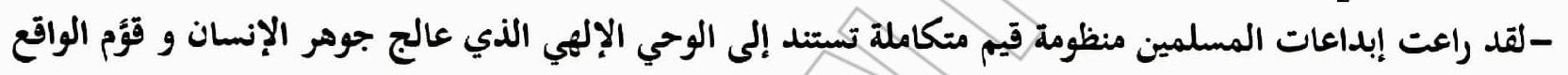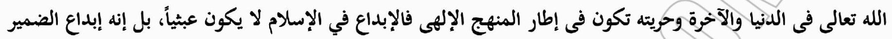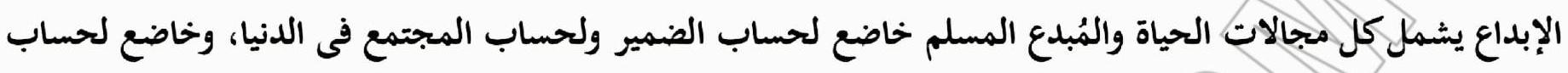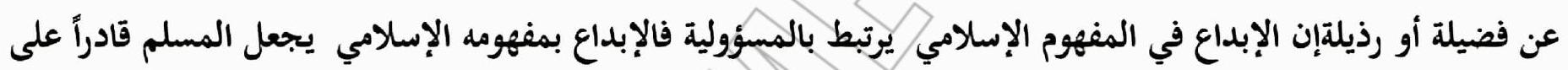 الإلهى .الإبداع في الإسلام يرتبط بالمسئولية النابعة من صميم الإسلام، على عكس الفلسفات الغربية التى لا تلتزم بمنظومة