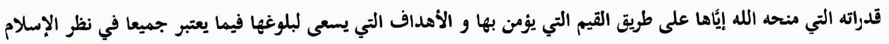 إليها الإسلام تشمل الحياة كلها و تتجاوز النفعية المادية الظرفية الضيقة و ينبني عليها الجزاء الأخروي.