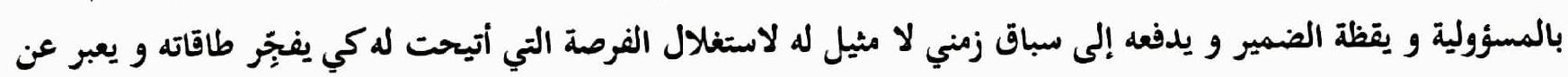 لحساب الضمير ولحساب المجتمع فى الدنيا، وخاضع لحساب الله تعالى فى الدنيا والآخرة وحريته تكون فى إطار المنهج الديل