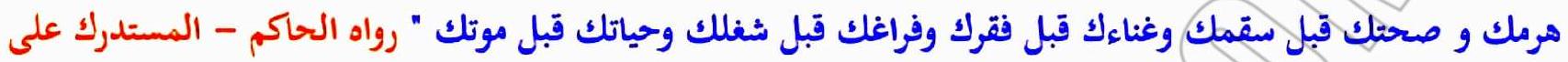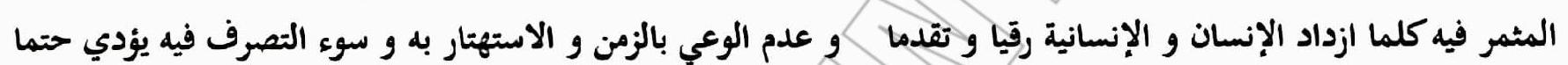 فترة لاحقة و يكون الغبن بالحصرة و الندم على عدم القيام بتلك الأنشطة في زمن ذلك الفراغ المهدور الذي لا يمكن أن
