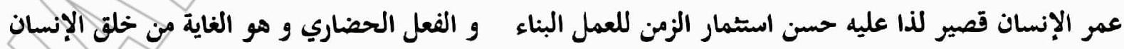 -إن الدور الحضاري للإنسان المسلم يقوم على العمل و الإبداع المتواصلين منذ لحظة الوعي الأولي و حتى ساعة الحساب