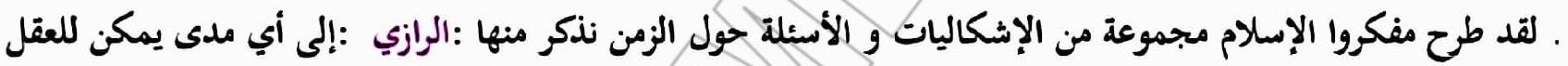 AELDOCUMENTS ابن سينا :الزمان لا يتصور إلا مع الحركة قال تعالى : » يقلب الله الليل و النهار إن في ذلك لعبرة لأولى الأبصار » النور 11 فالعبرة التي يستخلصها أولو الأبصار الكار الكال