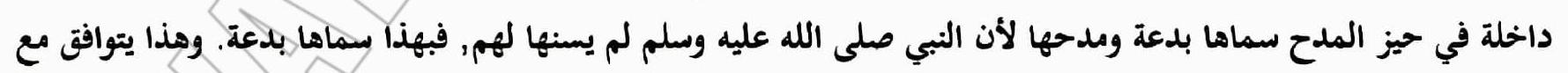 في بدعة الضلالة: من سن سنة سيئة كان عليه وزرها. وقول عمر رضي الله عنه: نعمت البدعة هذه لدال لما كانتّ من أفعال الخير