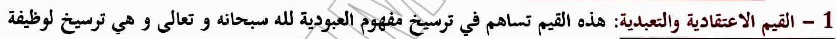 \text { من القيم التي تفعل الإبداع و العملية الإبداعية في الوبدلوم : }