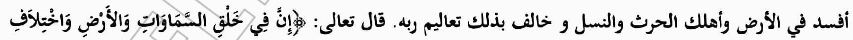 شأنه أن يؤول إلى الفساد في الأرض و إلى هدم و تدمير المكتسبات التي يصنعها العمل الصالح بالصبر و الدأب و المثابرة