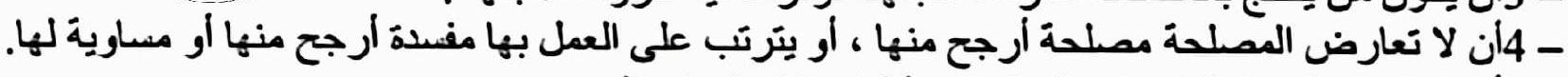 - 5ان لا تكون المصلحة في باب العبادت سدا لباب الابتداع في الدين.
