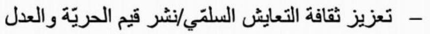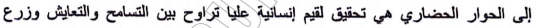 لن الشموب جبلت على السلاه وحب الحياة وجميع الاديان والشرائ تحف عليى التعاون والفير والوحدة فليكن الحوار بين الحفارات والشموب الموت الغالب المنتمر للانه املا الإبيالا التادمة في عاله خالل من النزام