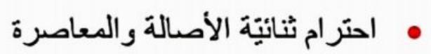 $\cdot$ قبول منطق الانفتاح على الآخر ورفض الانغلاق على الذات/الاستفادة من معارف الآخرين لتعزيز الكيان »الحكمة ضالة المؤمن يأخذها حيث وجدها » عصعثنانيّة الكونيّة والخصوصنيَة