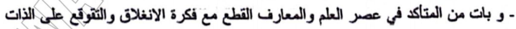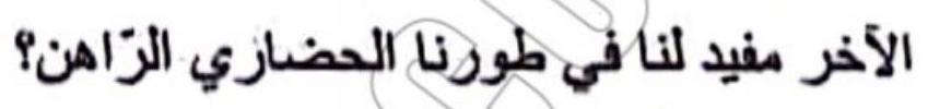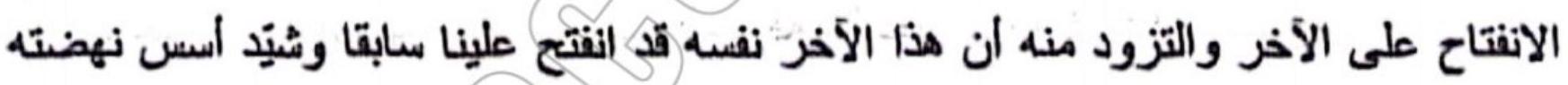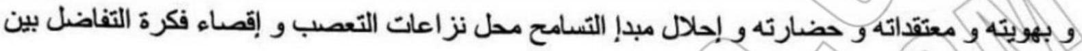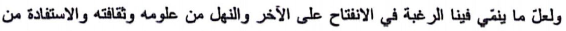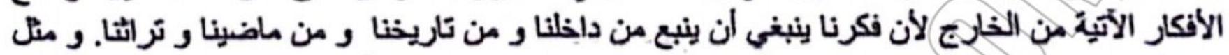 ترة. أليس في مذه الدعوة نزوع إلى الإنلاق؟ و متى كان الإفتاح على حضارات الخرى يمثل خطرإ إنه التعصب إنل المعحابه سواء العبيل.