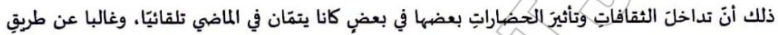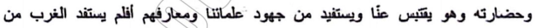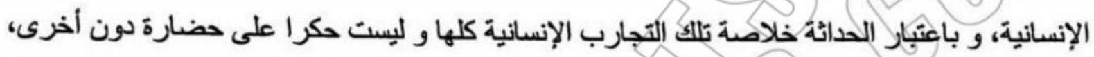 لانَ الحضارة الإنسانتِّة تَراث مشترك بين جميع الشتعوب قديمها وحديثها،الحضارة للجميع لاهي غربيَّة ولا عربيَة لاهي صينتِة ولا روستّةَّة إنَها تفاعل الثقافات على طول العصور.