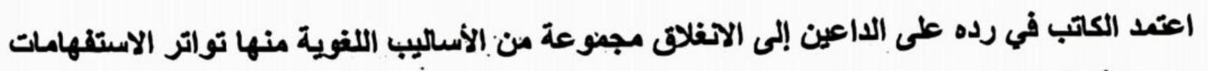 5- اعتد الكاتب في رده على الداعين إلى الانغلاق مجموعة من الأساليب اللغوية هددها ب بين دلالتها