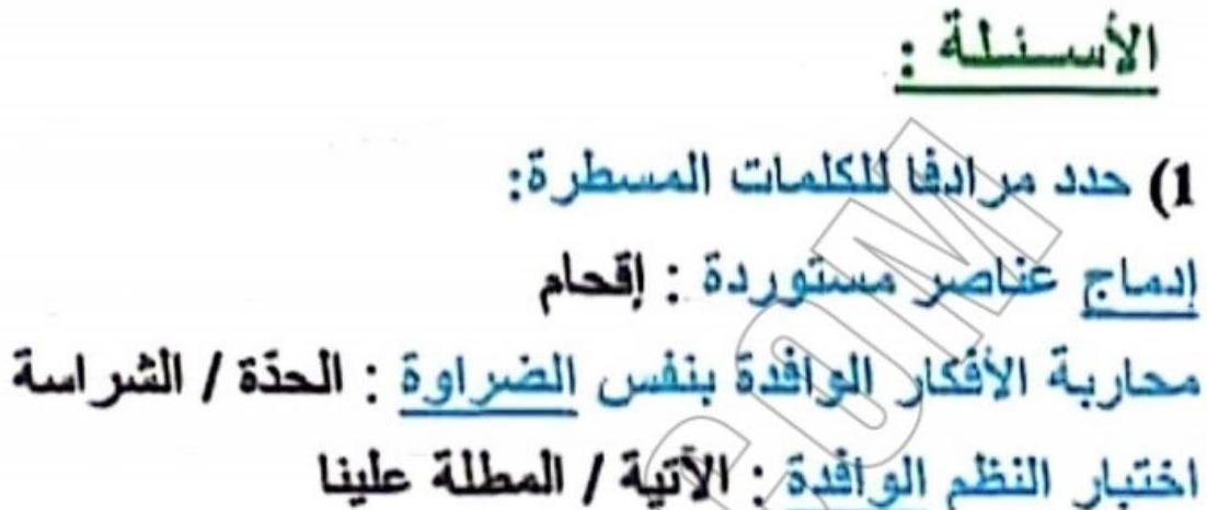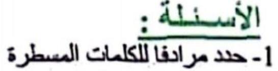 & \text { 1- بين معنى كل أداة مسطرة في النص: } \