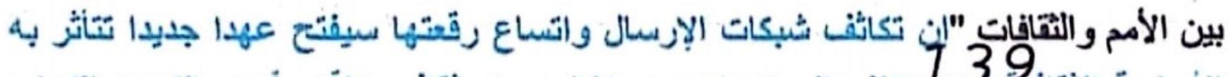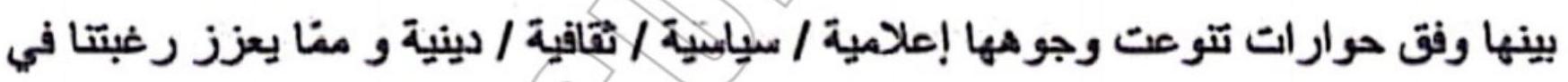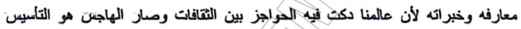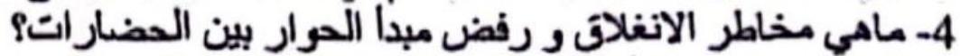 سياسي اذ تبنى بعف تادة العالم افكارهم والكن الروية الفيتة العدمية التي ترى ان لا سبيل التى مقارعة الكراهية والمراء الا بالانظلاقا والإرهاب والرفف ليست سبيلا النجاة من التطرفا والمنطرية,فحوار الحفارات عنيك تفية بشرية ملحة وضرورية وقيمة كونية جامعة كالحرية والديمتراطية وحتوقا الانسان ولو ان العالم استسلم للمنطرية النازية والفاشية والانظمة المثلقة المستبدة لما تنمست الانسانية بها تنعه به بن اليوه من رخاء وتقدم تقني وعلمي وانبازات فيي مجالان الصحة والتعليم والاقتطاد وان كانت متفاوتة بين بني البشر واني اعتقد ان معوقات حوار المفارات تكمن فيد هذه الروح الاستمالانية التي ترفض فهم ثقافة الاخر وقيمه وتحتقر انسانيته وتهاجه ثوابته ومقدساته وهي رو2 سلبية جامدة مطيرها الانثار