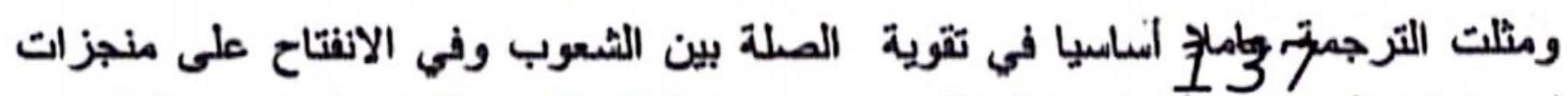 - الترجمة:تحقق التبادل المطلوب بين/الثقافات بعيدا عن سوء الفهم/تحقيق التلاقح الثقافي.