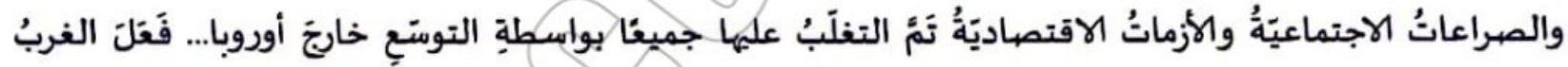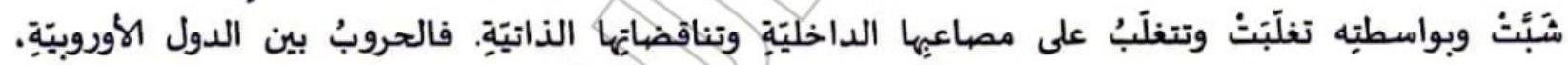 ومحاولات هيمنته على مقدراتَ الشعوب بالنهب او بالحرب الفقرة : تبوات تفية حوار الحفارات صارة الاهتماه الفكريّ والسياسي للعاله المعاصر ولا ريب انا المنظرين