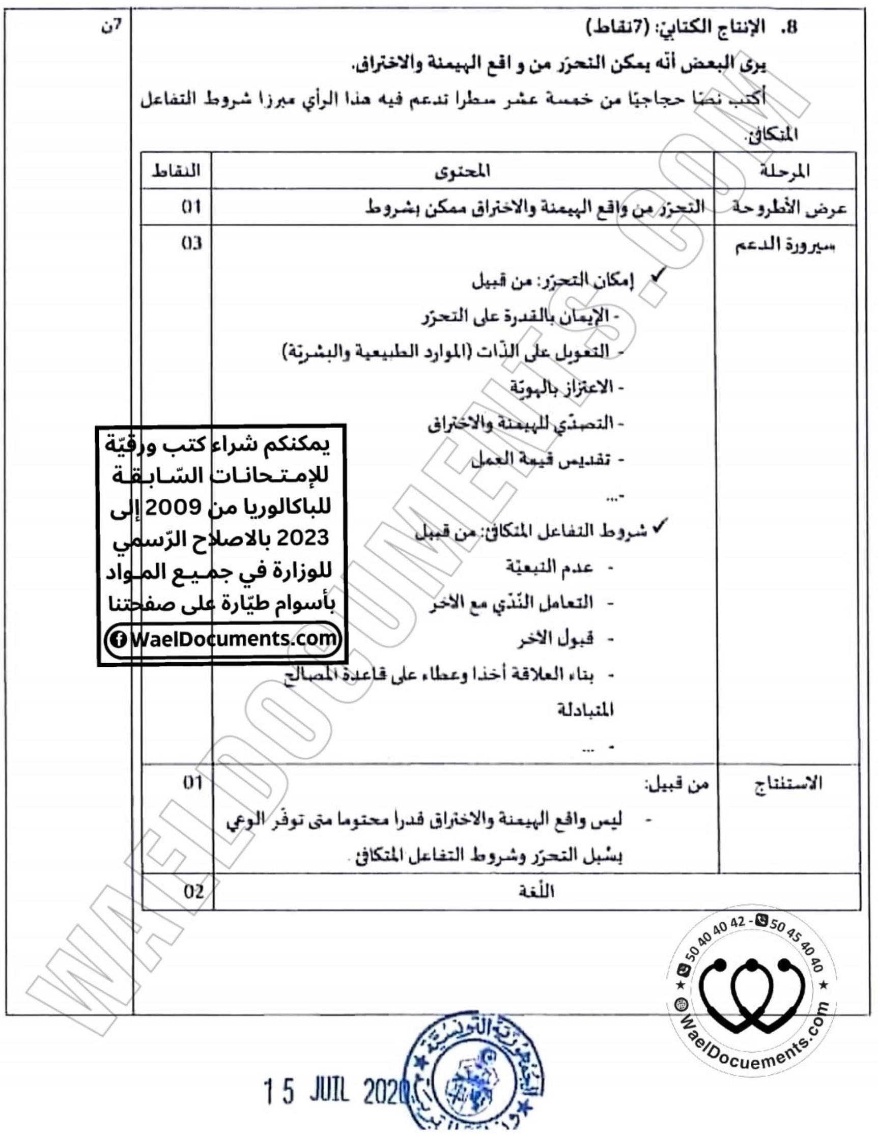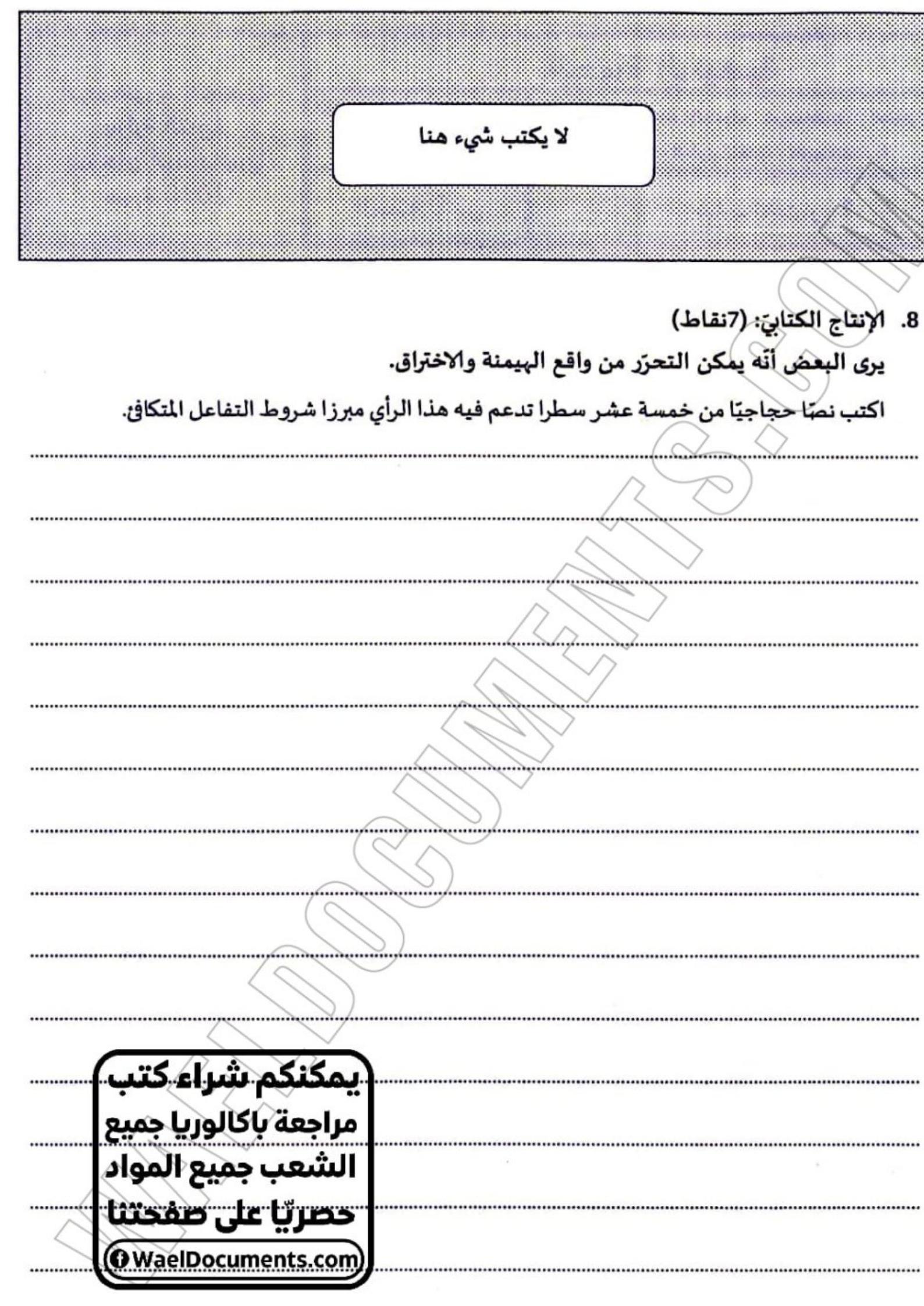 (ن03) . إبـــاء الرأي: III هل يمكن مجار اة الكاتب في اعتبار الانفتاح على حضارات أخرى لا يمثل خطر ا؟ لا يمكن حسب اعتقادي مجاراة الكاتب في اعتبار الانفتاح على الحضارات الأخرى لا يمثل خطرا لأن التحاو بقَر ما يحمل من إيجابيات بقّر ما يستبطن من سلبيات فلت ينطلب إلى تبعية و اغتراب و سلب لالسيادة و طسر للهويات.