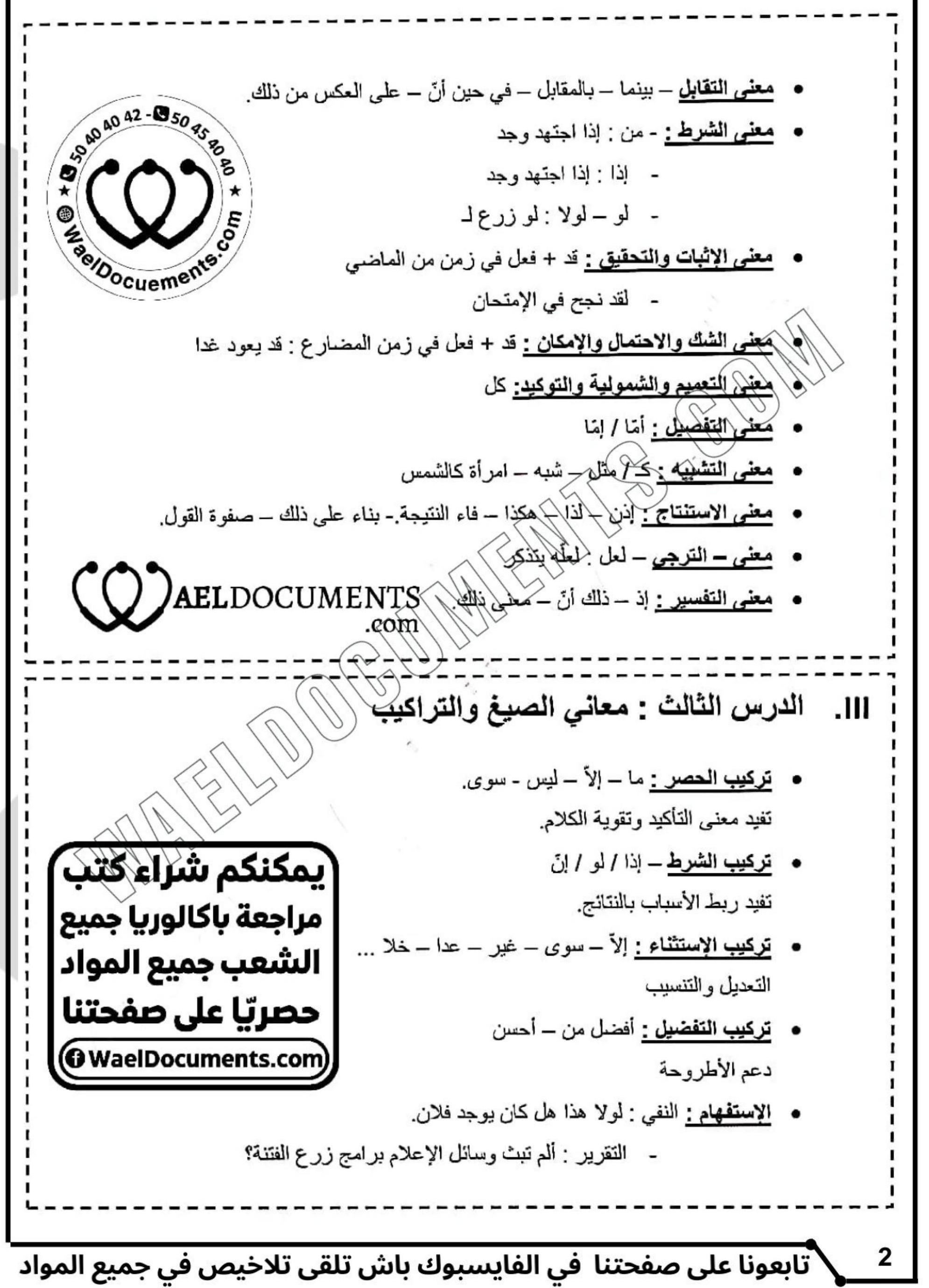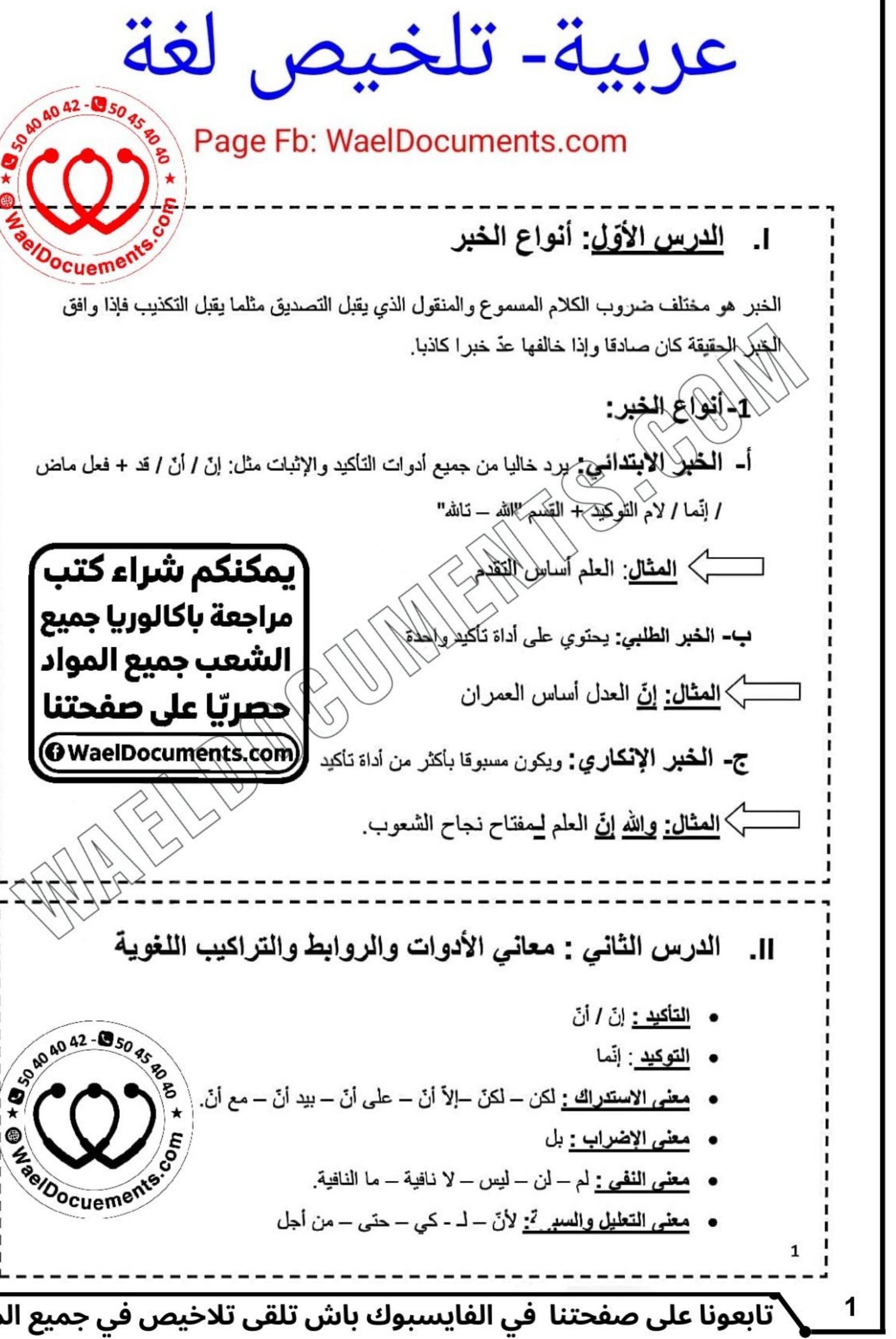 المحتوى: تلخيص، فروض و امتحان باك بالإصلاح، منهجية الأسئلة و الفقرة، تلخيص لغة عام كامل