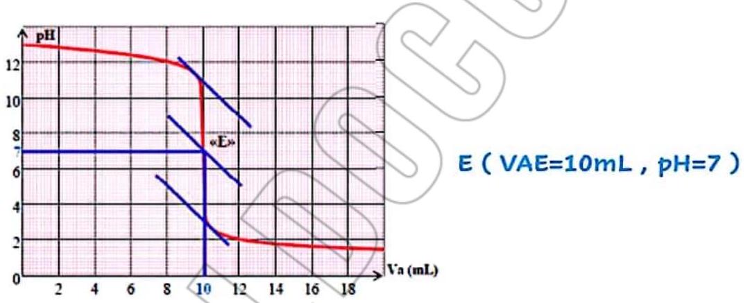 5- Déterminer graphiquemeut les coordonnées du point d’équivalence: