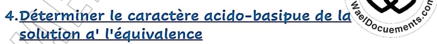 \section*{4 – Déterminer le caractère acido-basique de la solution à l’équivalence}