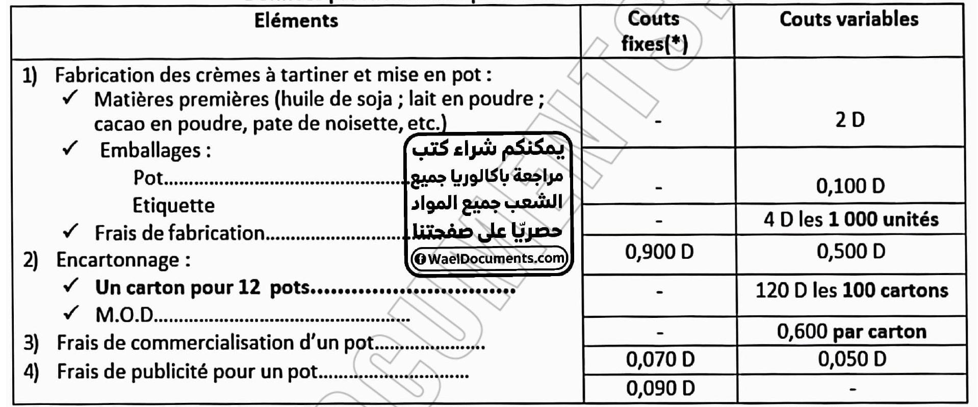$\checkmark$ Taux de marge bénéficiaire par rapport au prix de vente des détaillants est de $20 \%$; ${ }^{8} / \mathrm{o}_{\text {ocuemen }} \mathrm{rin}^{5}$ Le service comptable et financier vous fournit ci-dessous les éléments du cout de revient pour une unité (un pot de $1 \mathrm{~kg}$ ):