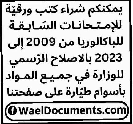 - زوروا موقعنا: www.WaelDocuments.com – أو ابعثولنا message privé ألى صفحتنا على الفايسبوك أو الانستغرام. اسم الصفحة: WaelDocuments.com – أو إتّصلوا بأرقامنا: 50404042 أو 50454040