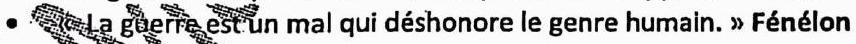 - FENELON: « La guerre est un mal qui déshonore le genre humaine ».