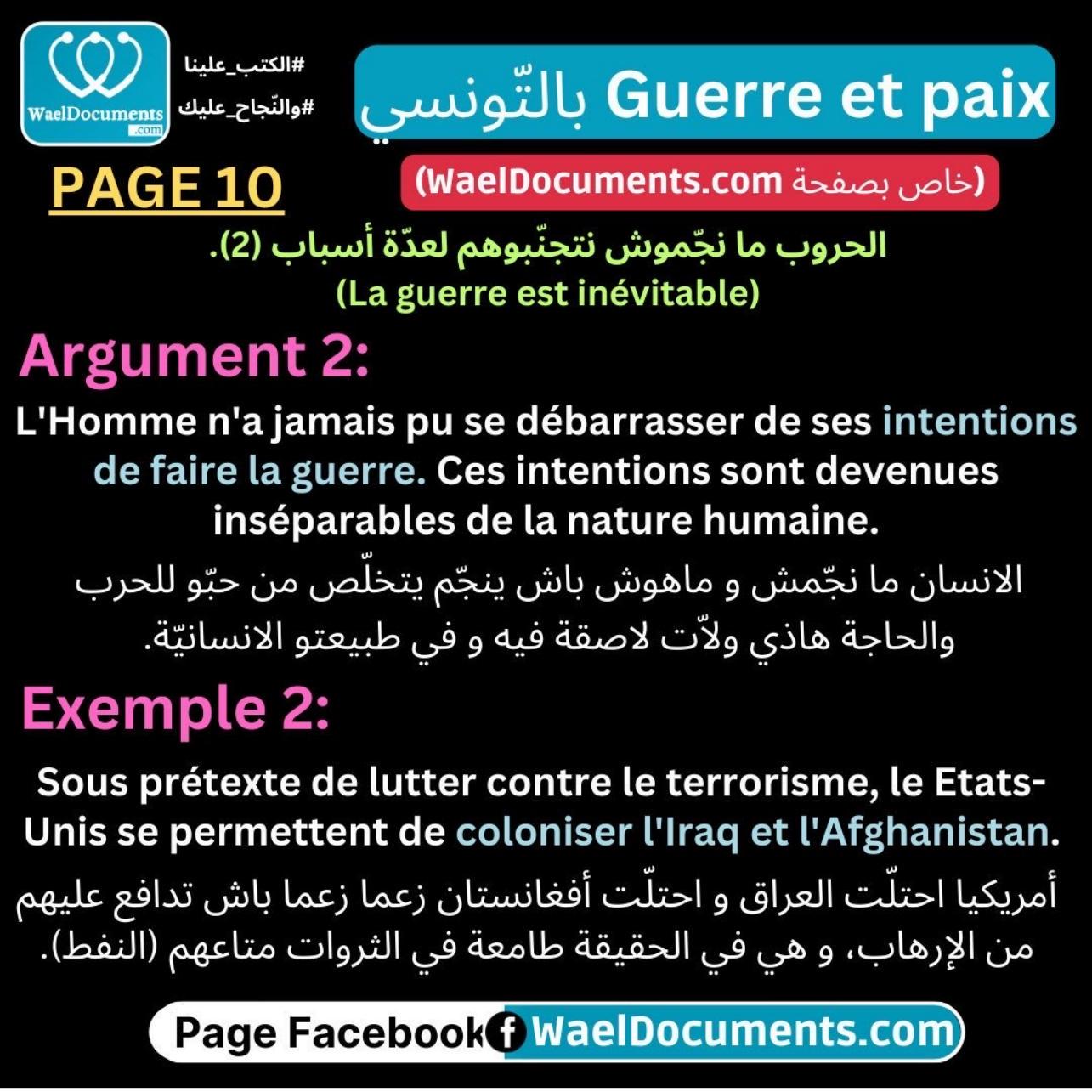الحروب يعملوها عباد باش يخوّفوا العدوّ، باش يوسّعوا أراضيهم وبالتّالي يضمنوا مستقبل زاهر لأحفادهم. بقية التلاخيص تلقاوها على صفحتنا WaelDocuments