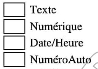 \hline NumTable & Numéro d’une table & Numérique & Entier & & \