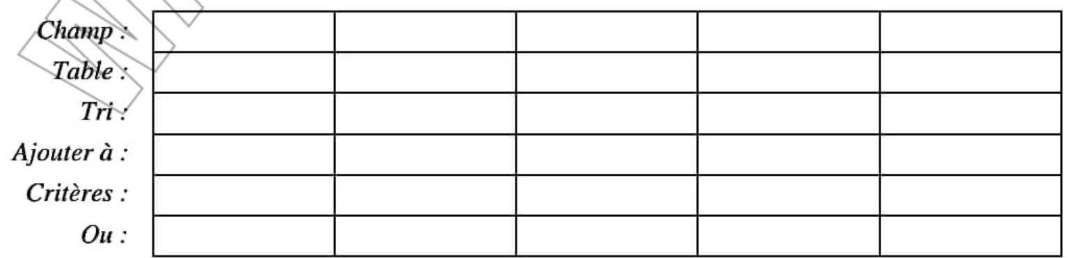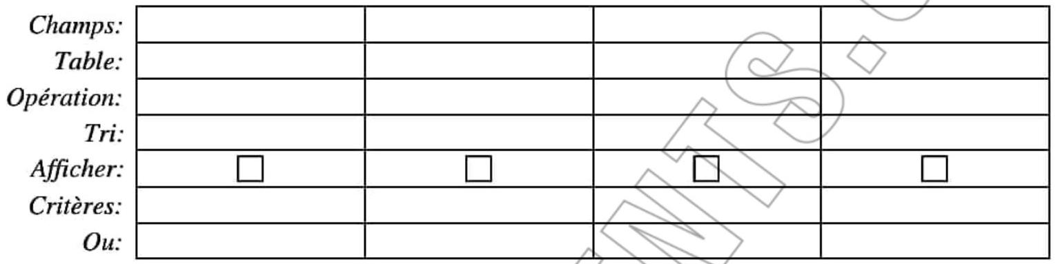 5) Soit la grille de la requête nommée « Requête4 » suivante