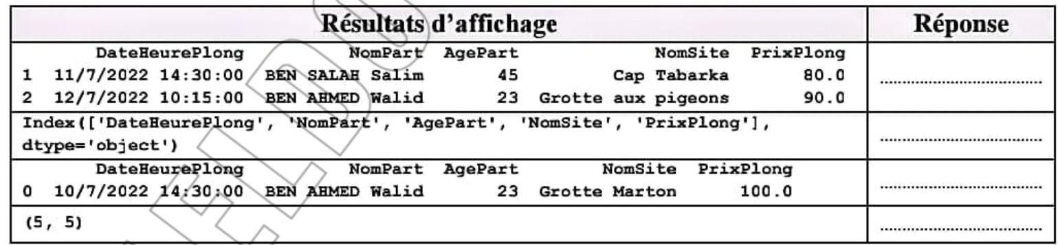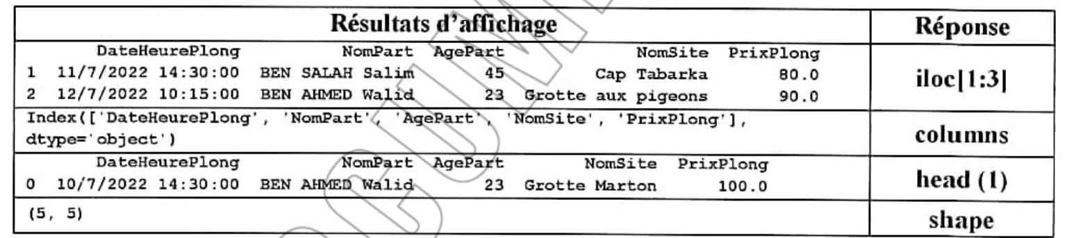 B) À l’aide de l’environnement de développement disponible et en exploitant la bibliothèque Pandas :