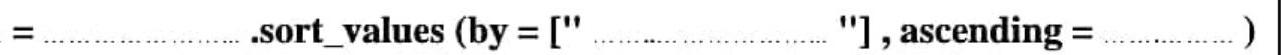 6) Trier le DataFrame « com » dans un nouveau DataFrame à nommer « com_tri » selon l’ordre croissant des numéros des tables et l’ordre décroissant les noms des plats servis puis afficher le DataFrame trié.