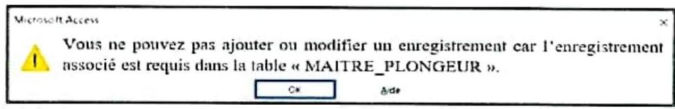 associé est requis dans la table «MAITRE_PLONGEUR».