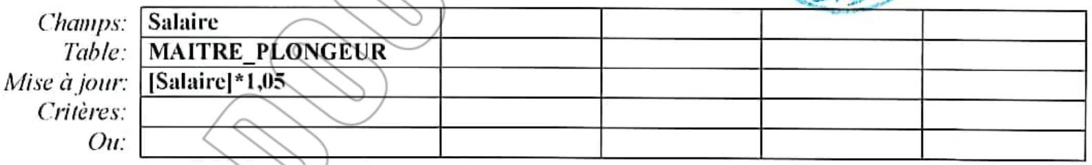 Requête2 : Augmenter les salaires des maîtres plongeurs de 5\%.