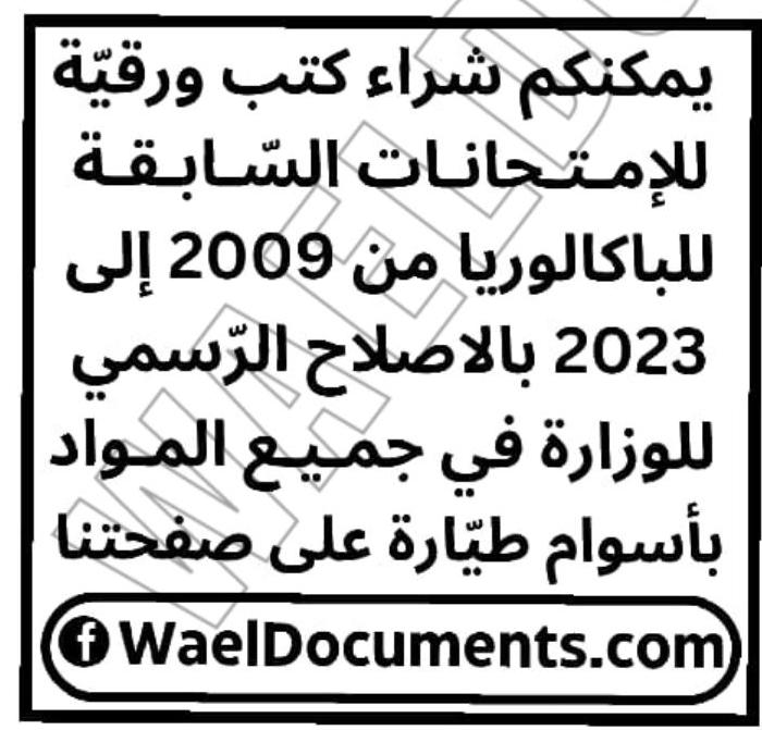 - زوروا موقعنا: www.WaelDocuments.com – أو ابعثولنا message privé على صفحتنا على الفايسبوك أو الانستغرام. اسم الصفحة: WaelDocuments.com – أو إتّصلوا بأرقامنا: 50404042 أو 50454040