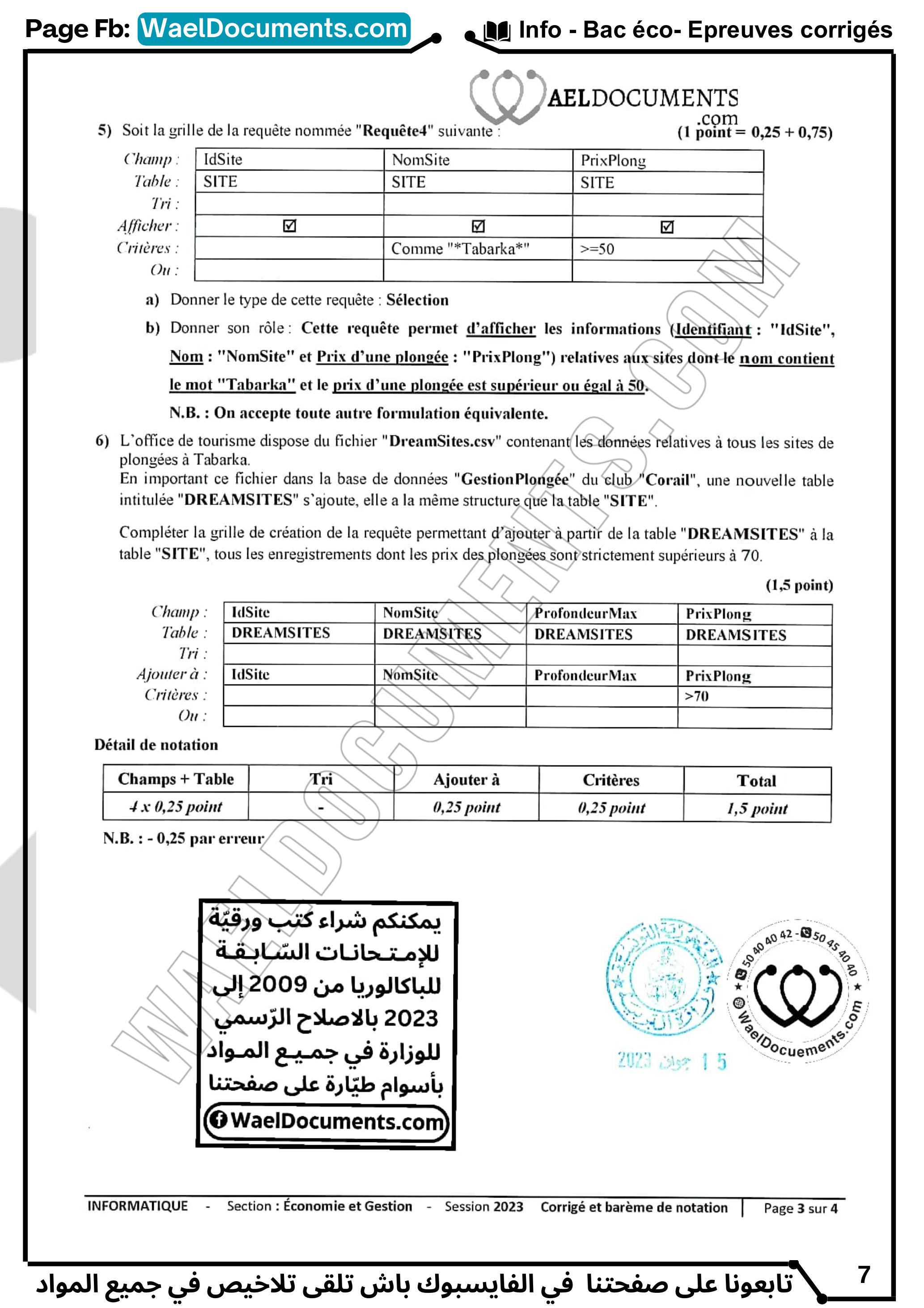 Épreuve : Informatique – Section : Économie et Gestion – Session 2023