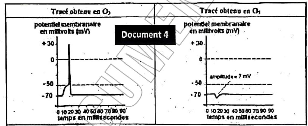 b- Expliquez l’obtention des tracés enregistrés en $\mathrm{O3}$ et en $\mathrm{O5}$ (document 4)