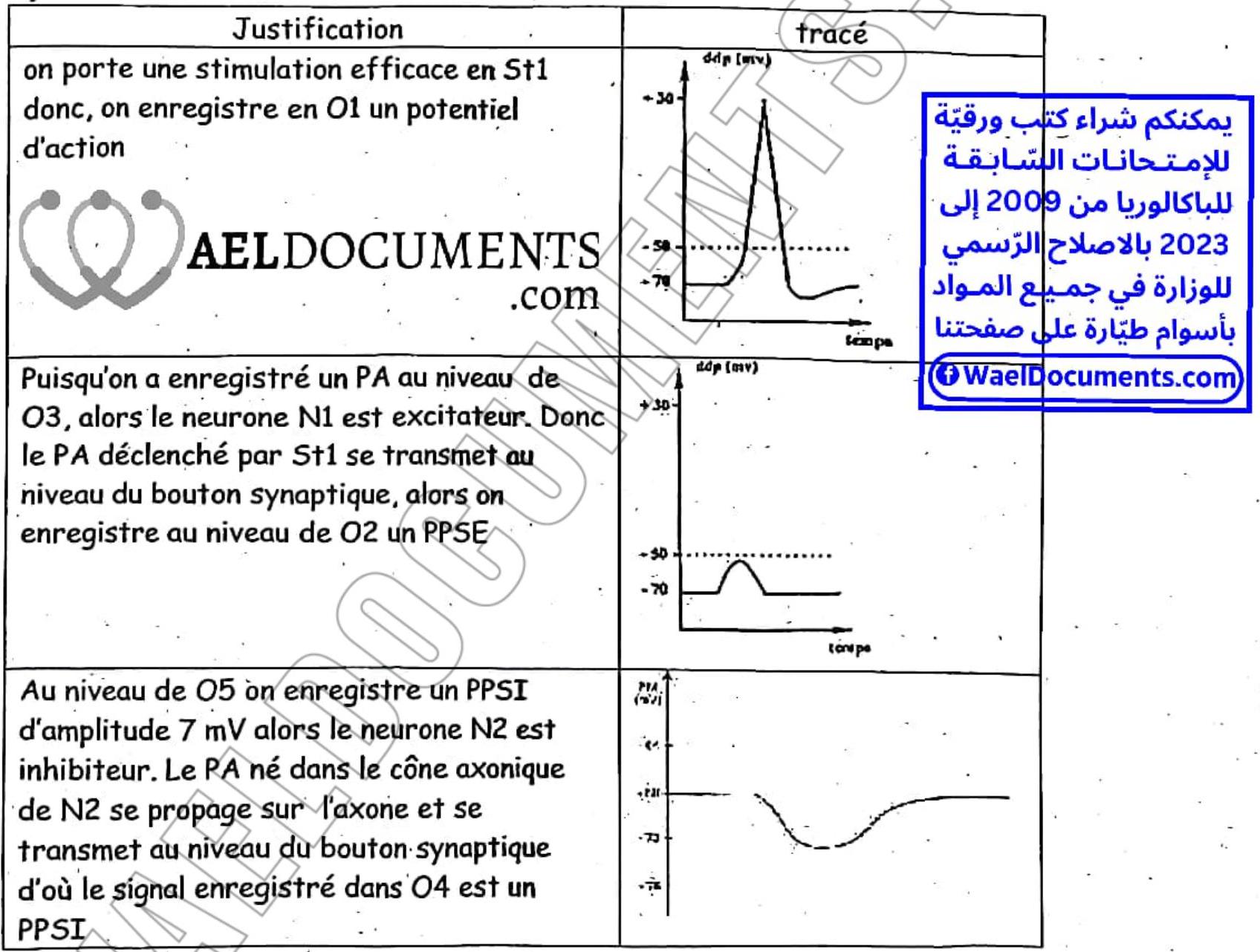 c- Déduisez la nature de chacun de deux neurones N1 et N2.