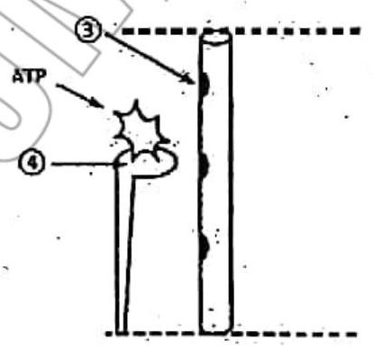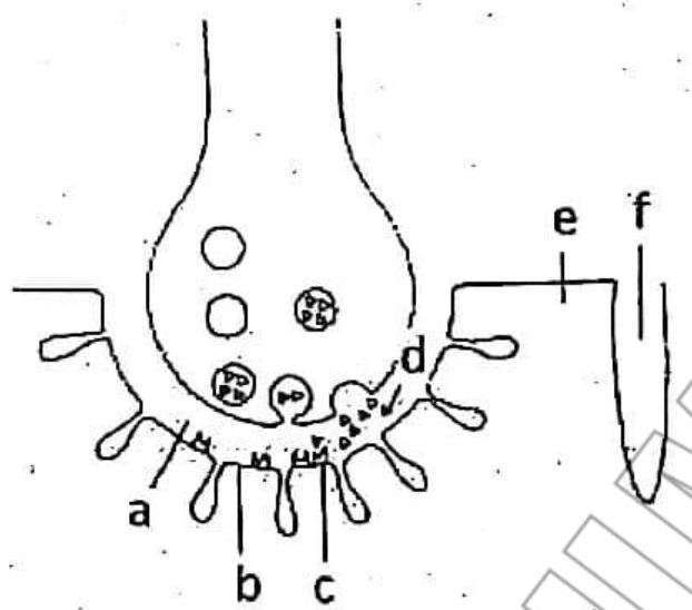 4) La transmission du message nerveux de $A$ vers $B$ et la réponse de l’élément $B$ font intèrvenir des messagers intercellulaires, l’acétylcholine et intracellulaire, le Ca2+.