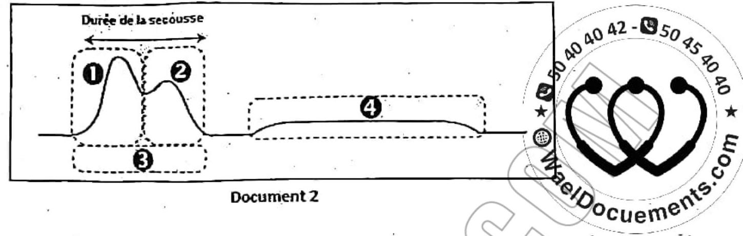 On applique une stimulation isolée en $\mathrm{S}+2$; on obtient en $\mathrm{O} 2$ et en $\mathrm{O} 3$ les tracés indiqués sur le document 5.