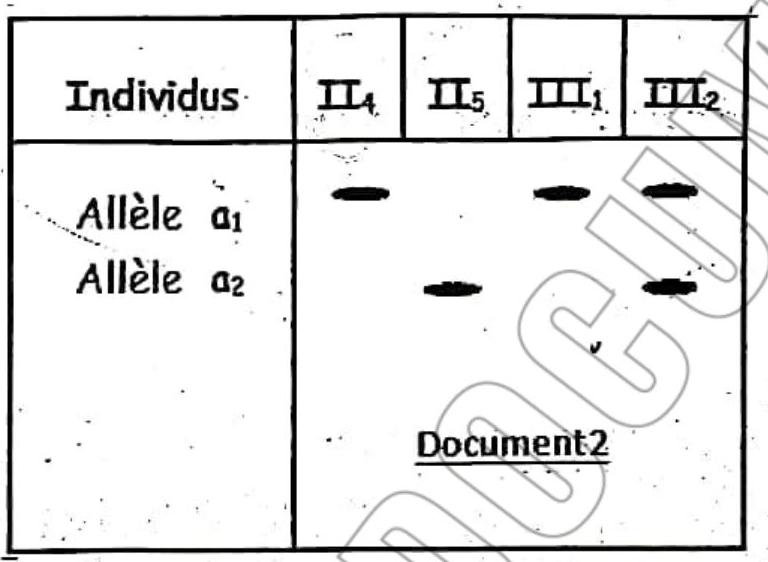 - le garçon $n^{\circ} 7$ sain $\longrightarrow 1$ seul allèle normal (4 individus sains= 4 allèles normaux) donc le fœtus ne porte pas A2. il ne porte que A1