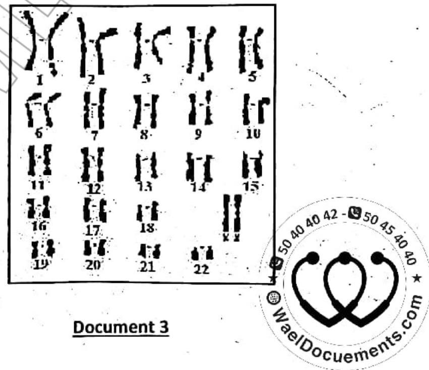 C’est le caryotype normal d’un spermatocyte II. Ce spermatocyte II est à l’origine du spermatozoïde qui a participé à la formation du caryotype anormal de la fille $n^{\circ} 3$ qui est trisomique (mongolienne). Donc on peut déduire que cette cellule a subi un accident au cours de l’anaphase II de la division équationnelle de la méiose; qui est due à la non séparation des chromatides sœurs du chromosome $n^{\circ} 21$. Les chromatides sœurs du chromosome 21 partent vers un même pôle de la cellule