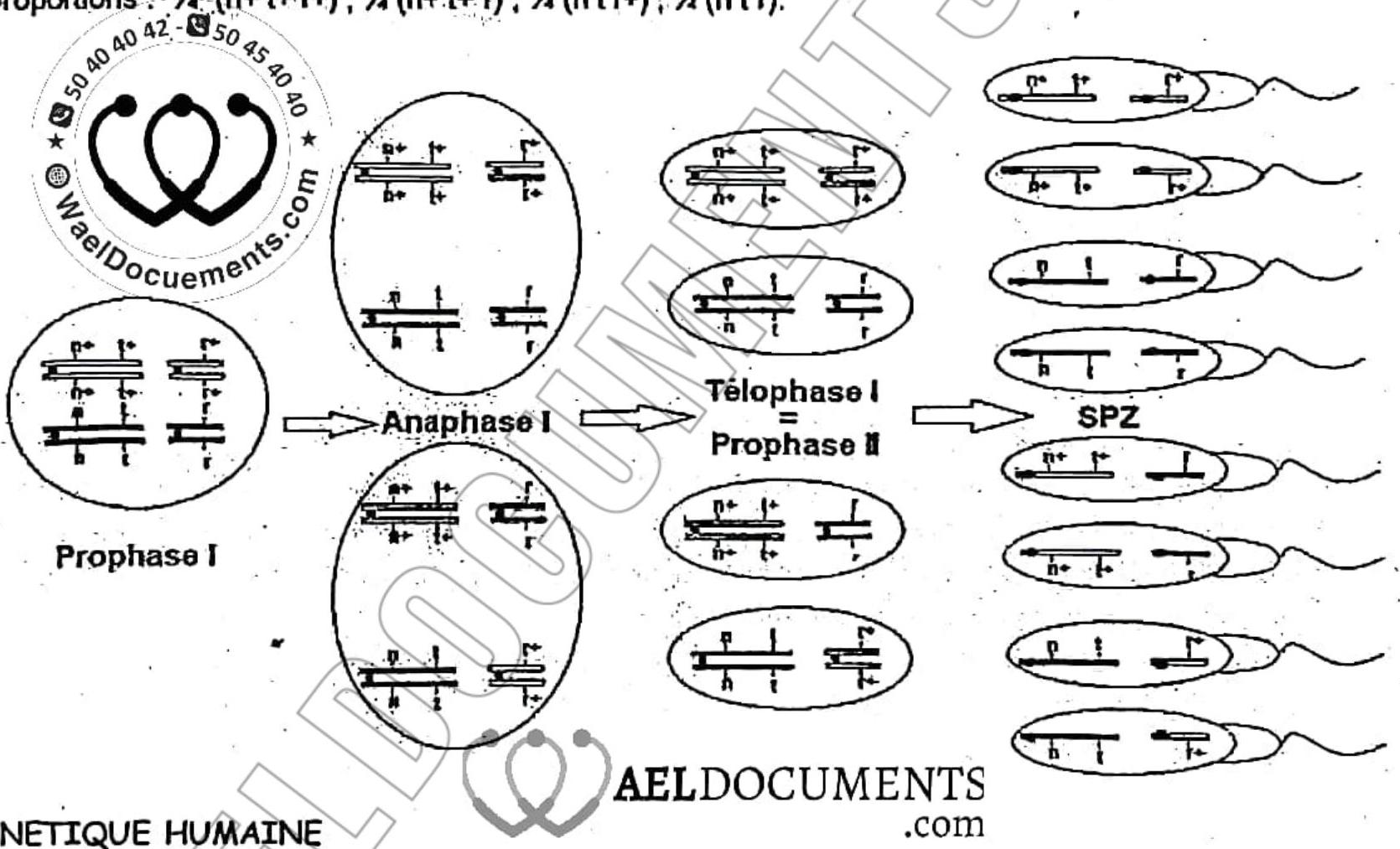 3) Les combinaisons possibles de la prophase I pour un spermatocyte I triple hétérozygote.
